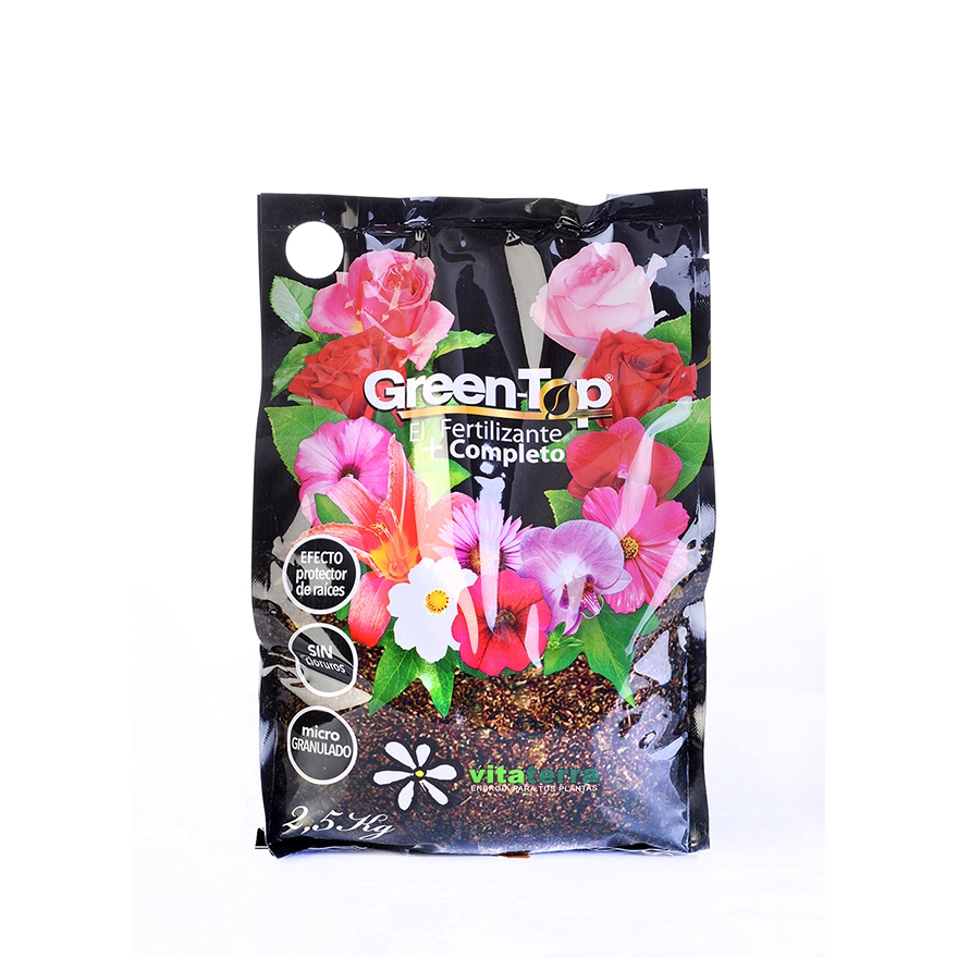 - FERTILIZANTE LÍQUIDO GREENTOP UNIVERSAL: Compuesto nutricional súper-complejo NPK 5-10-5 que contiene 15 elementos esenciales, aminoácidos y vitaminas para el desarrollo de las plantas. Su equilibrada y completa formulación, permite nutrir a la planta de manera rápida y eficiente, así como ayudar a combatir enfermedades causadas por hongos gracias al Azufre y Cobre presentes en su composición. GREENTOP® Contiene: NITRÓGENO, FÓSFORO, POTASIO, AZUFRE, MAGNESIO, HIERRO, CALCIO, BORO, COBRE, ZINC, MANGANESO, MOLIBDENO, COBALTO, TIAMINA (VITAMINA) Y CISTEÍNA (AMINOÁCIDO).