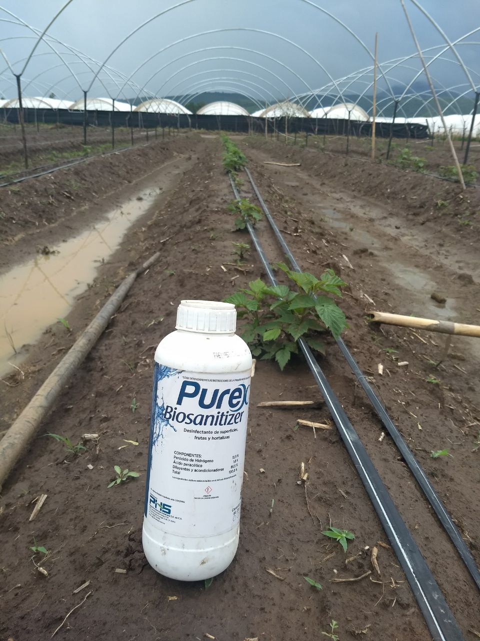 Debido a esto, Purex Biosanitizer fue utilizado en campo para evitar la asfixia radicular por exceso de agua de lluvia (inundación) en el cultivo de Frambuesa, ya que gracias al efecto de efervescencia y que permite la descompactación del suelo y ayuda a la aparición de espacios en el suelo, ayuda a una mejor respiración radicular. Además, elimina todo tipo de hongos y bacterias presentes en el suelo, logrando un efecto de sanitización y se logra sin dañar el sistema radicular del cultivo. Todo esto debido a que Purex Biosanitizer tiene la capacidad de inyectar aire al suelo, ayudando al desarrollo de raíces, logrando plantas más sanas y fuertes.